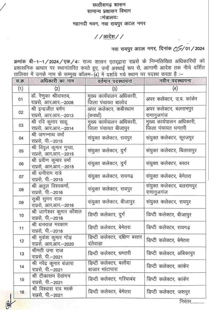 ट्रांसफर ब्रेकिंग : छत्तीसगढ़ में बड़ी प्रशासनिक सर्जरी, बदले गए कई जिला पंचायत CEO…