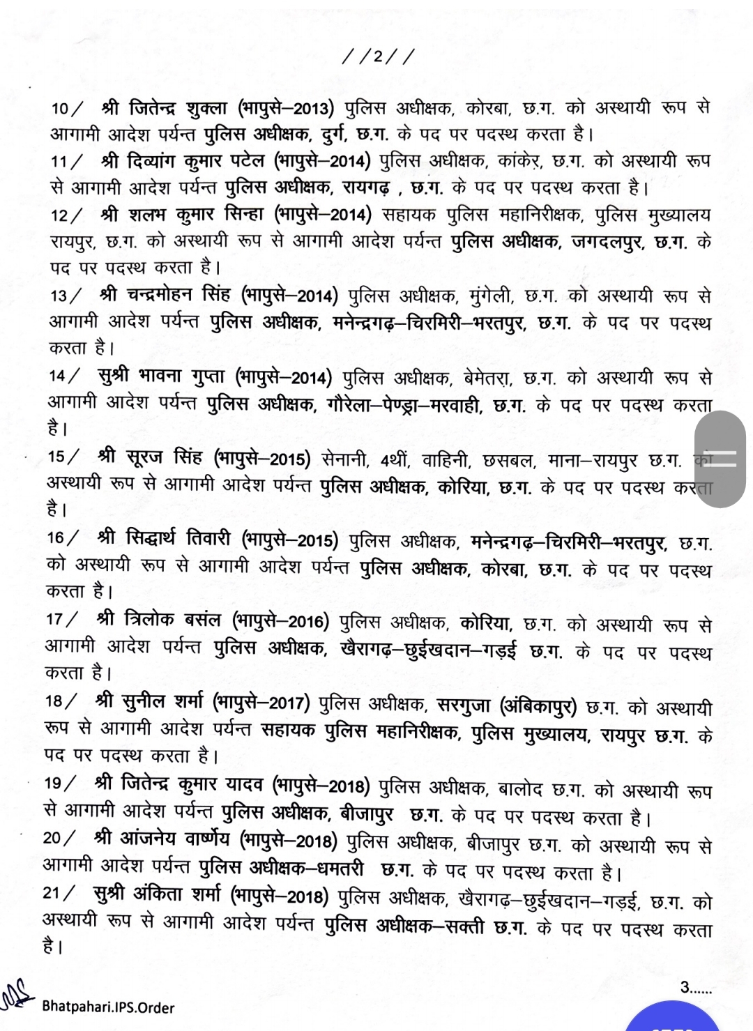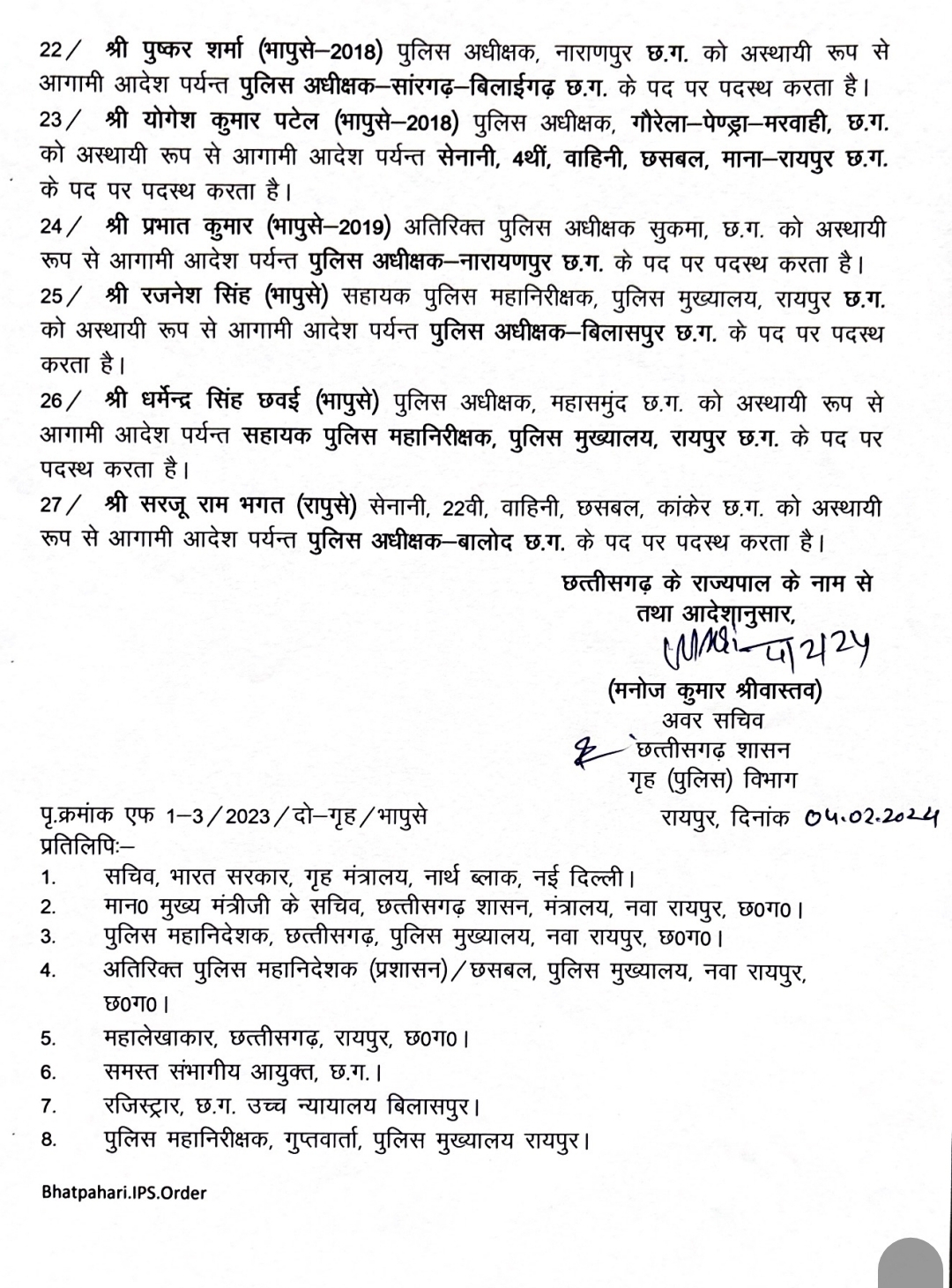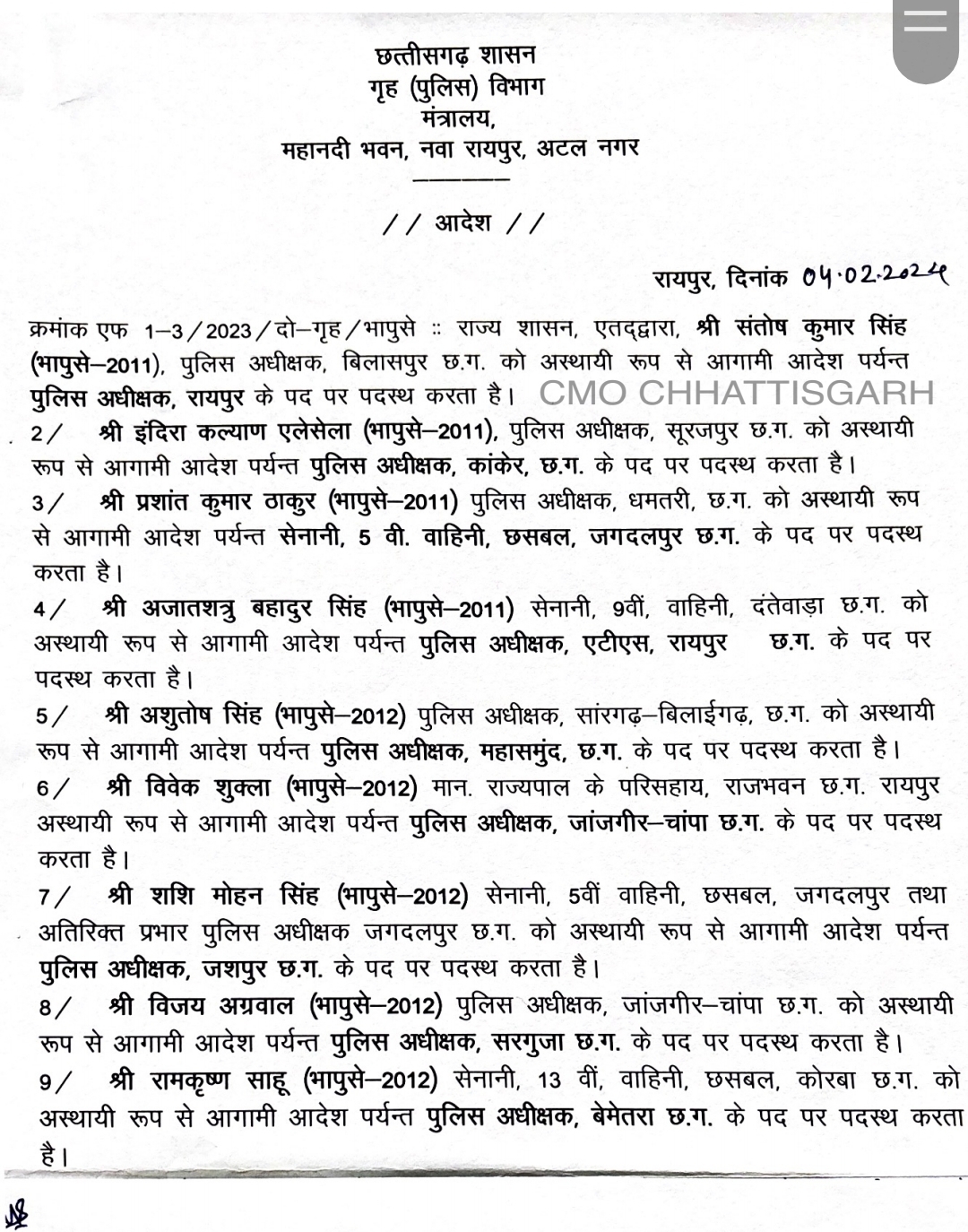 छत्तीसगढ़ में 25 जिलों के SP बदले गए हैं. देखे सूची-