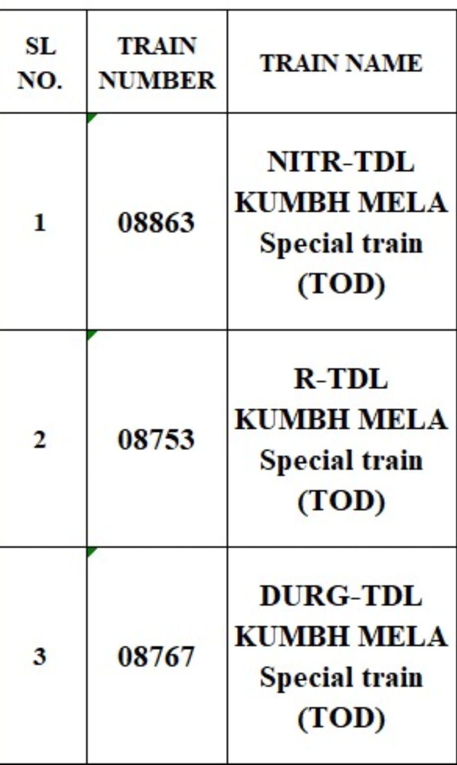 तीनों गाड़ियों में कुंभ मेला में जाने के लिए सीटें खाली है यात्रियों से अनुरोध है कि उक्त गाड़ियों में आरक्षण कराकर कुंभ मेले का आनंद ले। यात्रीगण सारनाथ नौतनवा एक्सप्रेस के अतिरिक्त कुंभ मेला स्पेशल के द्वारा भी प्रयागराज दर्शन के लिए जा सकते हैं।