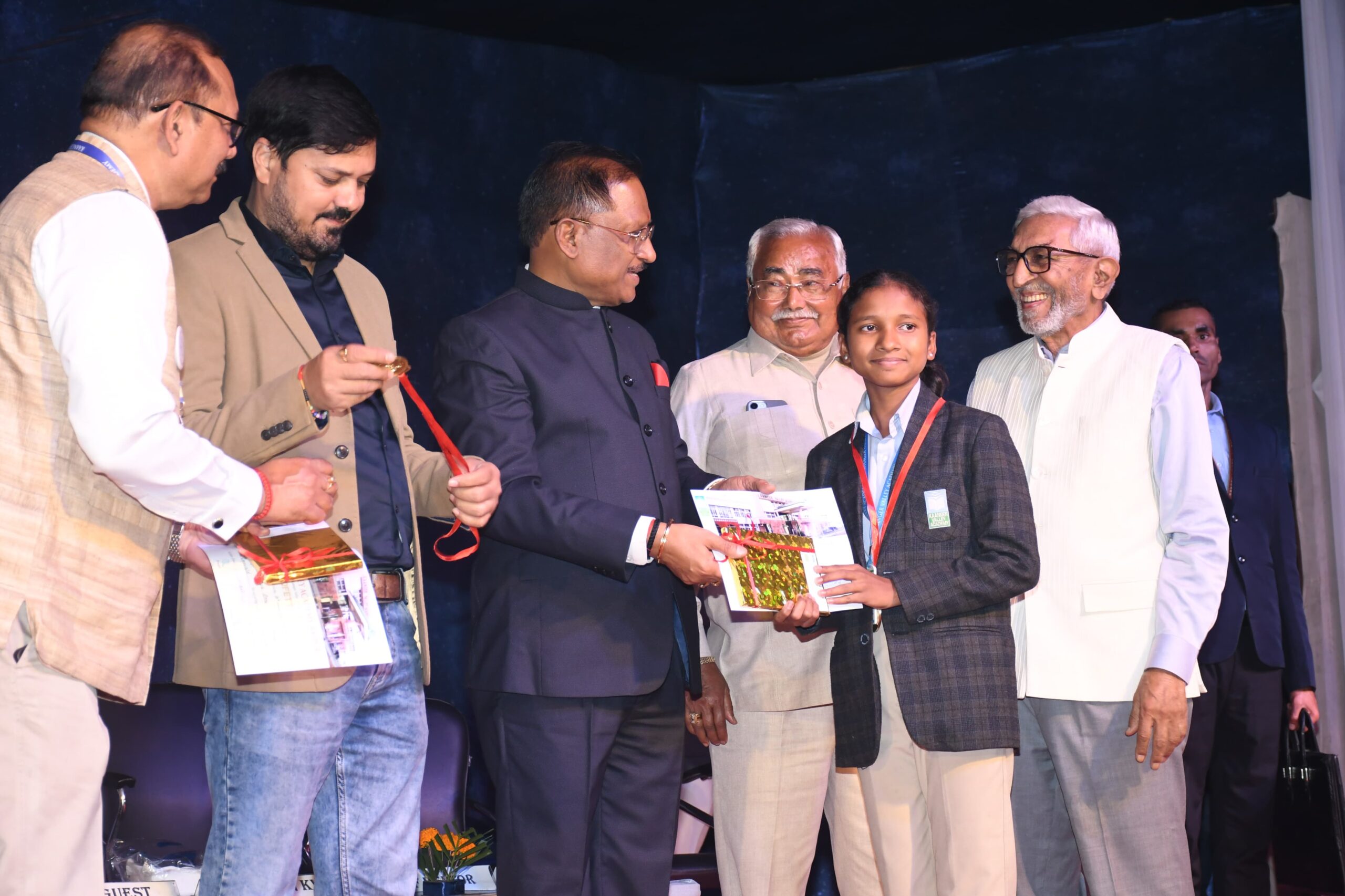 सारांकन के मंच पर मुख्य अतिथि माननीय विष्णुदेव साय मुख्यमंत्री, छत्तीसगढ़ शासन एवं विशिष्ट अतिथि पद्मश्री श्री अनुज शर्मा विधायक, छत्तीसगढ़ शासन की उपस्थिति साथ ही विद्यालय के संरक्षक श्री स्वरूपचंद जैन, मार्गदर्शक श्री रतनलाल जैन, उपस्थित रहे।