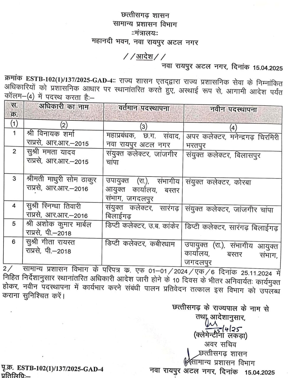 राज्य प्रशासनिक अफसरों का तबादला, देखें किसे कहां मिली पोस्टिंग
