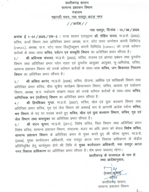 राज्य सरकार ने 5 आईएएस अधिकारियों के प्रभार में फेरबदल किया है।